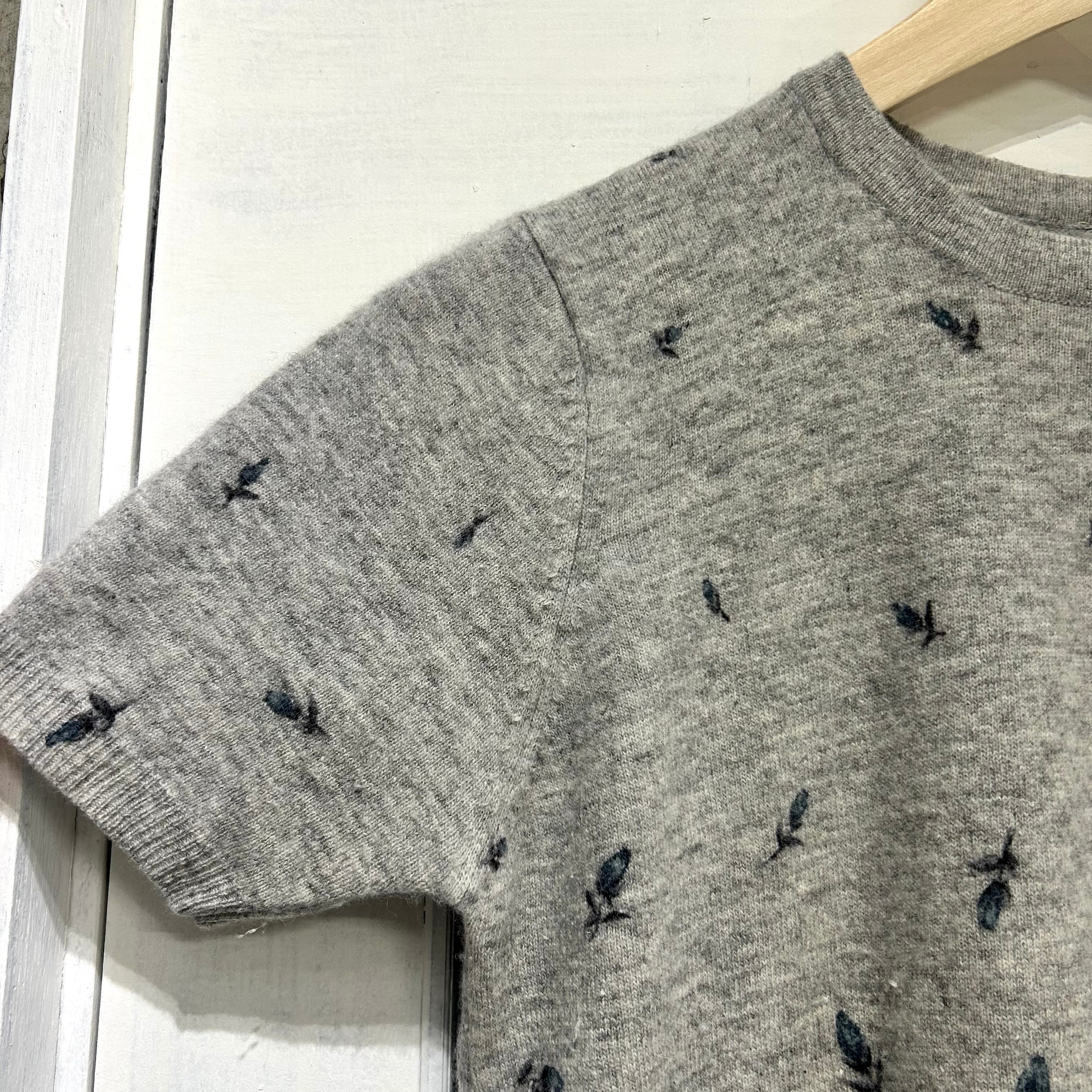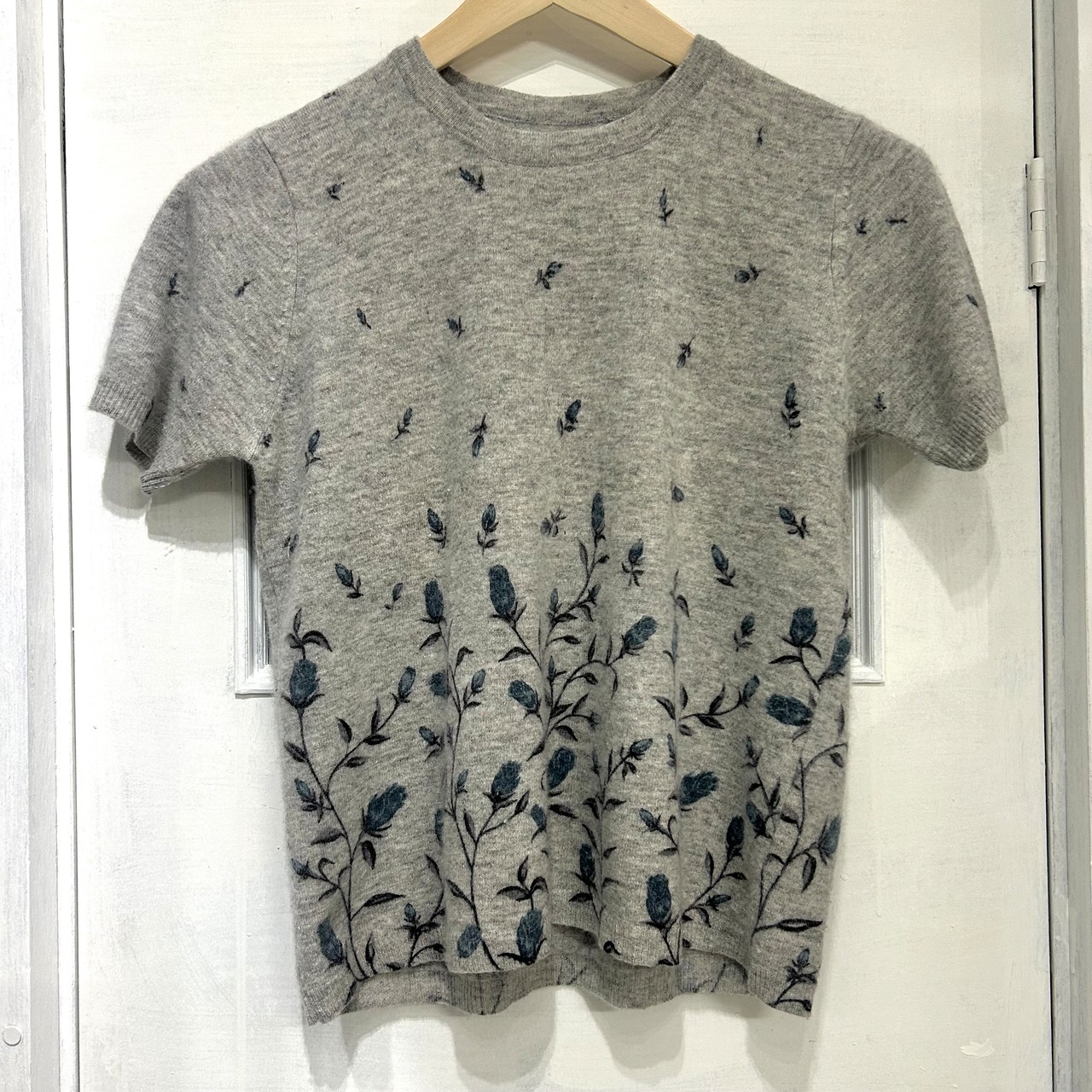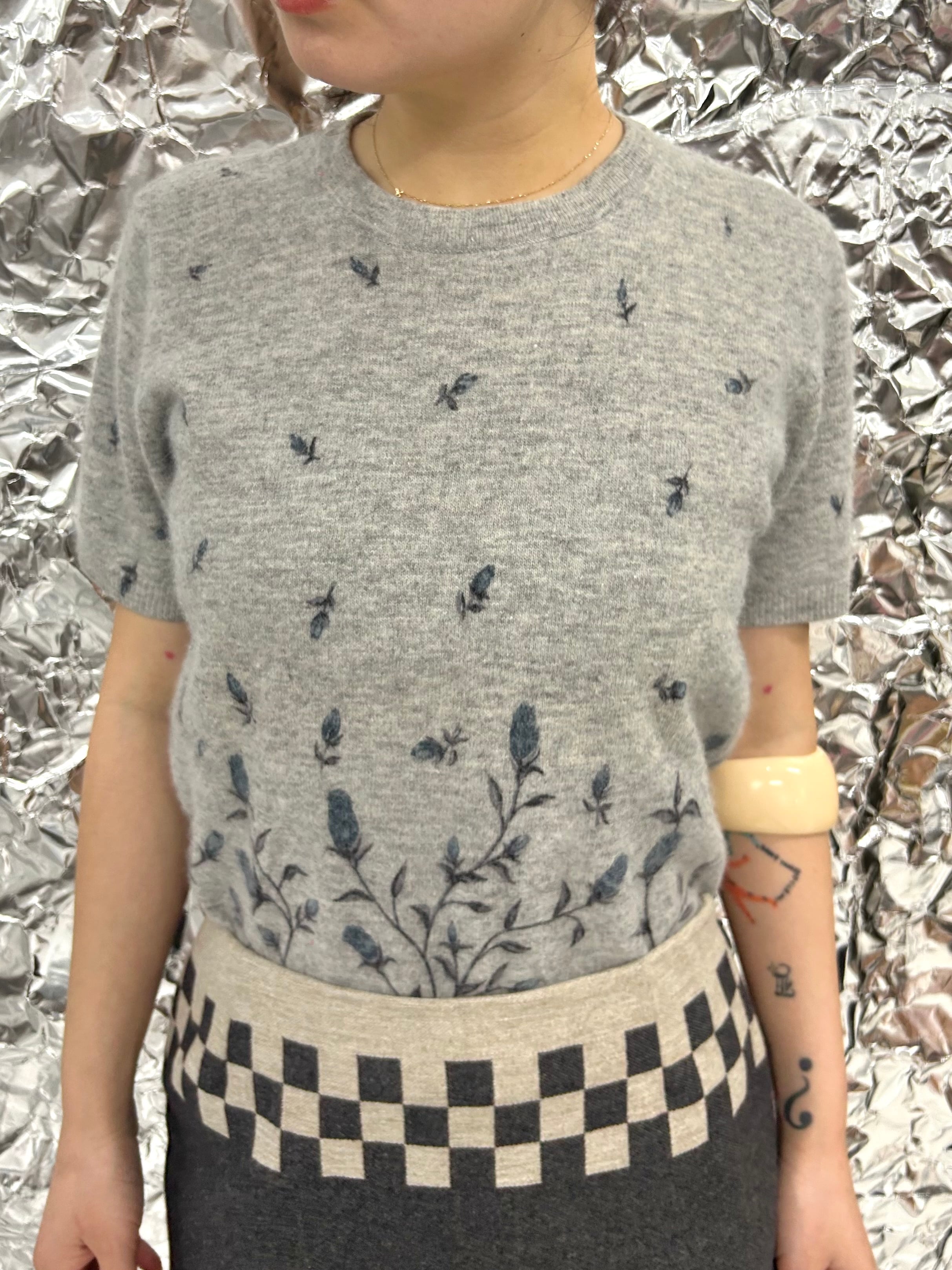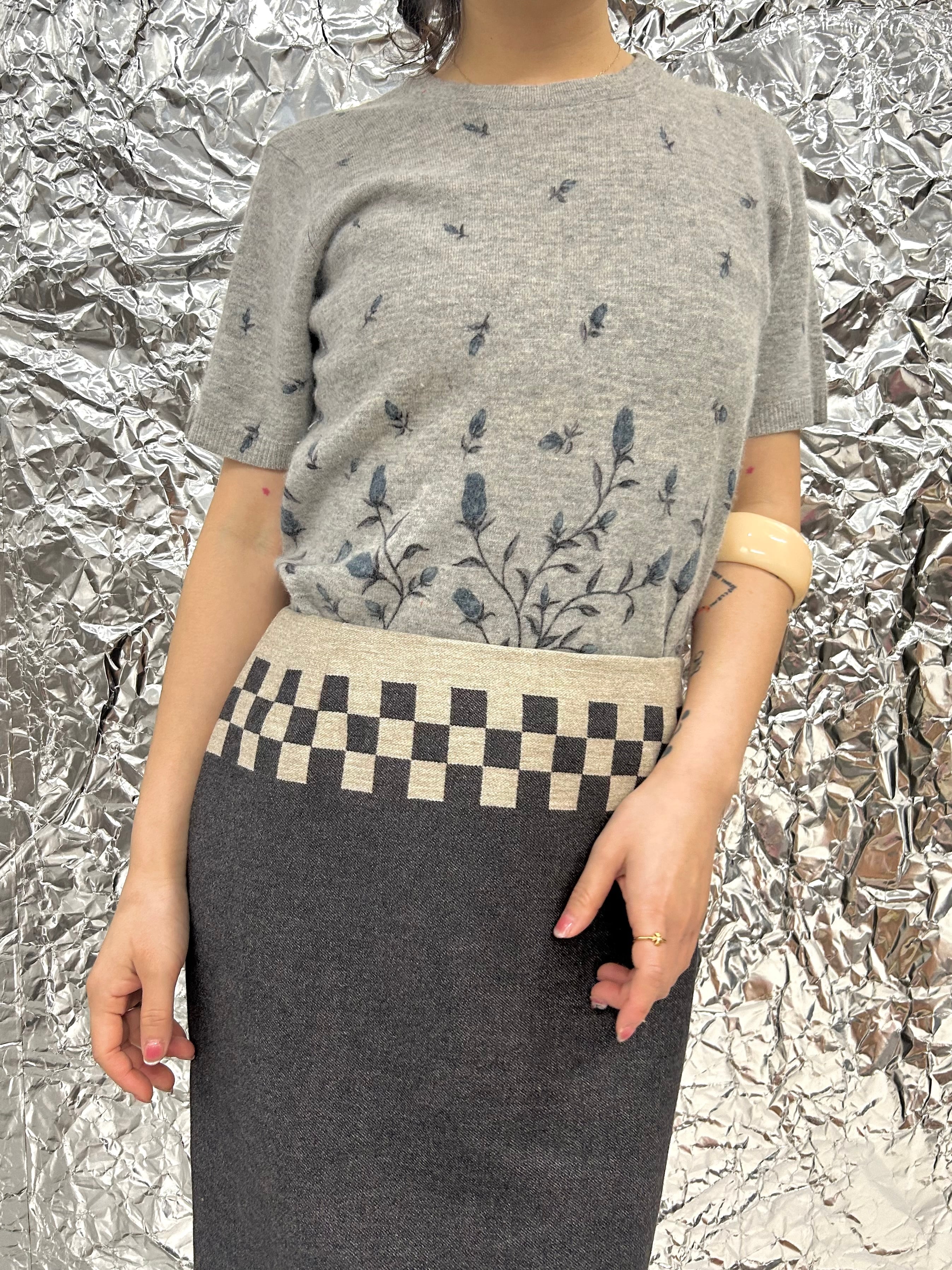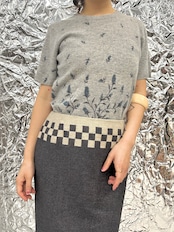 グラデーションのように舞い上がる小花がエレガント。柔らかなニット地が雰囲気を漂わせてくれます。