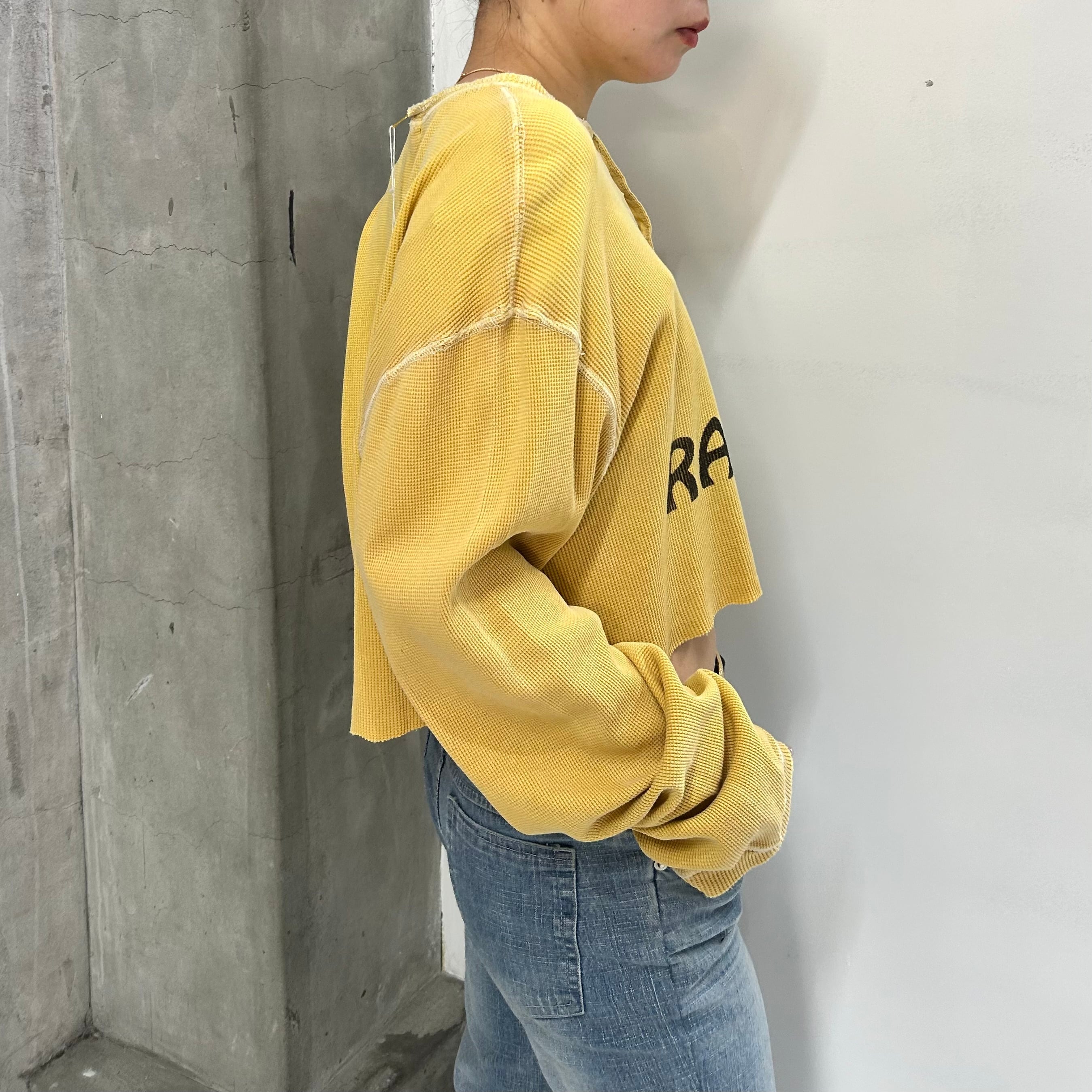 袖のインパクトと切りっぱなしのデザインのバランス感が楽しい一枚。ヘルシーに着たい反面、レイヤードも面白そうです。