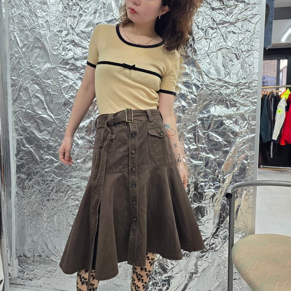 キッチュな見頃デザインにヌーディな色合いがたまらない一枚。